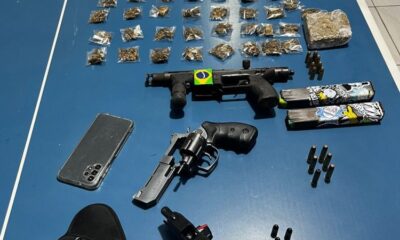 Policiais militares de Mirassol d’Oeste prenderam dois homens, de 19 e 21 anos, pelos crimes de porte ilegal de arma e tráfico ilícito de drogas, no...