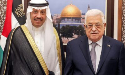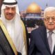 Assessoria de imprensa da Autoridade Palestina (PPO) – 26.09.23 Presidente da AP, Mahmoud Abbas (R), recebendo as credenciais do embaixador da Arábia Saudita na Palestina, Nayef...