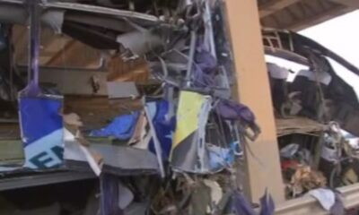 Divulgação: Defesa Civil Destroços do ônibus Um menino de 2 anos perdeu a mãe e mais sete parentes no acidente de ônibus que aconteceu na madrugada...