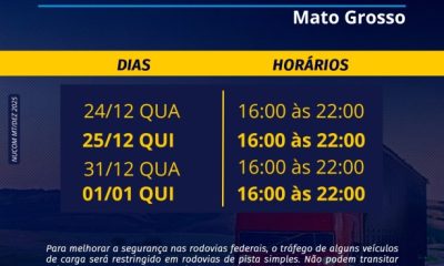 A Polícia Rodoviária Federal (PRF) dará início, nesta quarta-feira (24), à Restrição de Tráfego Final de Ano 2025. A mobilização segue até a quinta-feira (1º de...
