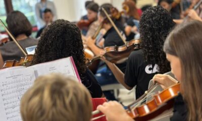 Divulgação Jovens ensaiam para concerto que pede a paz Crianças e jovens que participam da Orquestra Criança Cidadã – um projeto de inclusão social pela música...