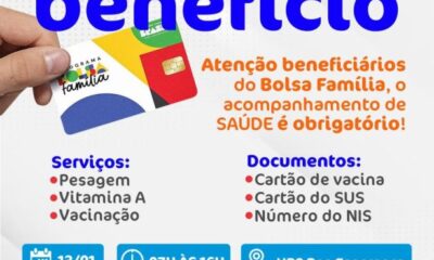 Neste sábado (20), tem ação de pesagem do programa Bolsa Família, do Governo Federal, nas Unidades Básicas de Saúde do bairro Boa Esperança e Sebastião de...