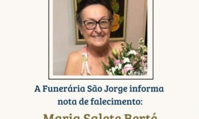 Luto Oficial É com profundo pesar que a Administração Municipal recebe a notícia do falecimento da pioneira Maria Salete Berté. Ela lutava contra um câncer, mas...