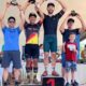 Os Caratecas Calebe Carrias, Isabele Carrias, Benício Fornari e Pedro Henrique da Academia de Artes Marciais Seishin com o apoio da Prefeitura Municipal, por meio da...