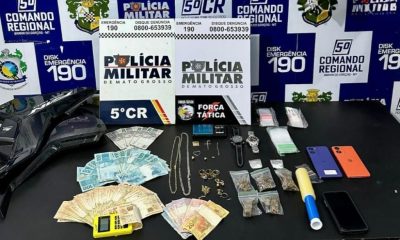 Policiais militares do 5º Comando Regional prenderam em flagrante, nesta quarta-feira (4.3), quatro suspeitos envolvidos em um roubo a uma ourivesaria em Barra do Garças (520...