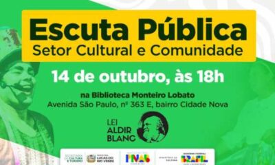 A Secretaria de Cultura e Turismo de Lucas do Rio Verde convida a população e representantes do setor cultural para participar de uma Escuta Pública, que...