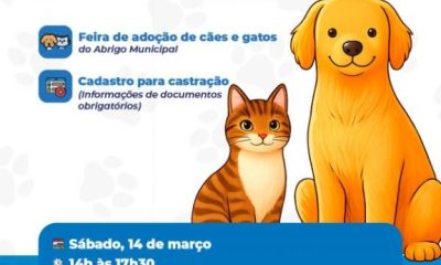 A primeira feira de adoção de pets de 2026 já tem dia marcado: será em 14 de março, das 14 às 17h30, no Parque Ecológico Municipal...