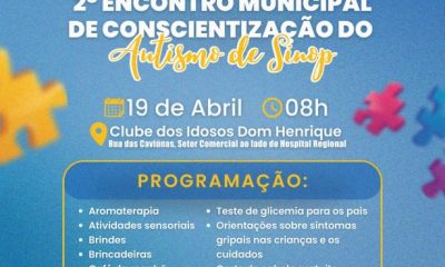 A prefeitura de Sinop, por meio da Secretaria de Saúde, realizará nesta quarta-feira (19), o 2° Encontro Municipal de Conscientização do Autismo. O evento vai reunir...