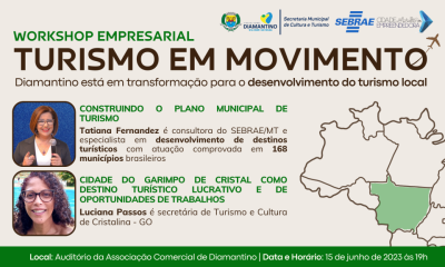 A Prefeitura de Diamantino, por meio da Secretaria Municipal de Cultura e Turismo juntamente com o Sebrae-MT, promovem no dia 15 de junho às 19h, o...