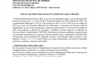 A Prefeitura de Lucas do Rio Verde informa que os candidatos do Processo Seletivo nº 004/2023, da Secretaria Municipal de Educação, já podem imprimir o Cartão...