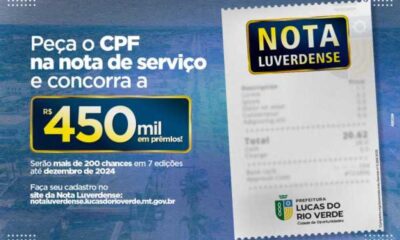O próximo sorteio da campanha Nota Luverdense acontece no dia 23 de dezembro. Todos os contribuintes que solicitaram nota fiscal de prestadores de serviço entre os...