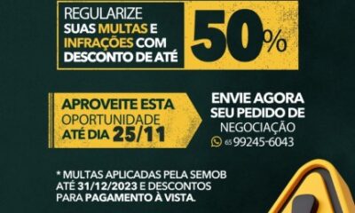 Para quem ainda não aproveitou a oportunidade de quitar débitos de multas ou infrações de trânsito, a Prefeitura de Cuiabá, por meio da Secretaria de Mobilidade...