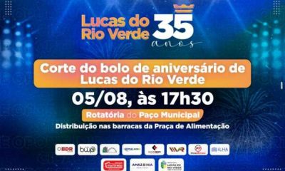 Para cantar os parabéns com toda a população, a Prefeitura de Lucas do Rio Verde realizará o tradicional corte do bolo. A celebração é gratuita e...