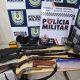 Policiais militares do 24º Batalhão da Polícia Militar apreenderam, neste sábado (21.2), armas de fogo e recuperaram veículos de um roubo em uma propriedade na zona...