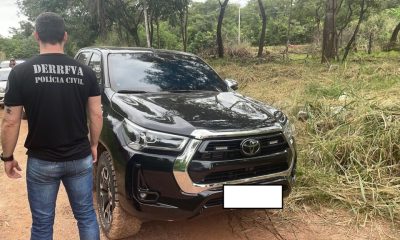 Equipes da Delegacia Especializada de Roubos e Furtos de Veículos (Derfva), com apoio da Polícia Militar, recuperaram na tarde deste sábado (06.05) a camionete modelo Hilux...