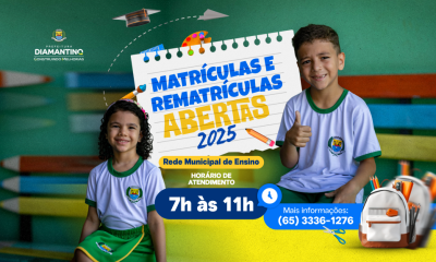 A Prefeitura de Diamantino, por meio Secretaria Municipal de Educação, convoca pais ou responsáveis que ainda não efetuaram a matrícula ou rematrícula de seus filhos para...