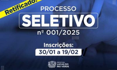 A Prefeitura de Lucas do Rio Verde, por meio da Secretaria de Governo e Administração, retificou nesta segunda-feira (03), o Edital de Processo Seletivo Simplificado nº...