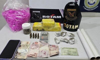 Policiais militares do Batalhão de Rondas Ostensivas Tático Móvel (Rotam) prenderam em flagrante um homem, de 20 anos, por tráfico ilícito de drogas, no final da...