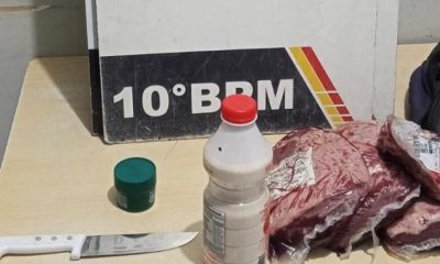 Policiais militares do 10º Batalhão prenderam em flagrante, na noite desta terça-feira (20.1), um homem suspeito de roubar peças de carne e ameaçar funcionários de um...