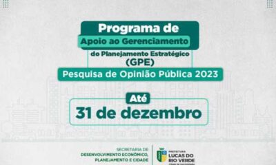 A partir deste sábado (15), a Prefeitura de Lucas do Rio Verde estará realizando uma pesquisa de opinião pública. Se torna imprescindível a cooperação da população,...