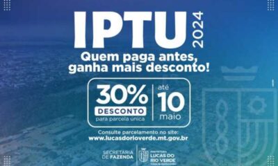 Segue até sexta-feira (10), o prazo para pagamento do Imposto Predial e Territorial Urbano (IPTU) com desconto de 30% em 2024. A taxa pode ser emitida...