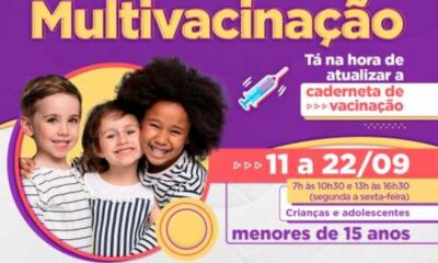 Começa nesta segunda-feira, dia 11 e segue até 22 de setembro a campanha nacional de multivacinação, para crianças e adolescentes menores de 14 anos. Os pais...
