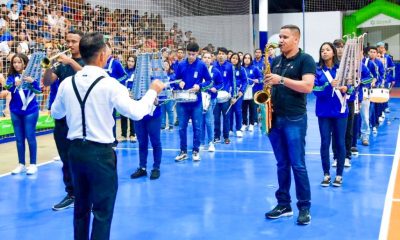 Conforme a melodia tocada pela Banda de Percussão na quadra poliesportiva vai invadindo os corredores da Escola Estadual ‘Elizabet Evangelista’, em Rosário Oeste, rostos de estudantes...
