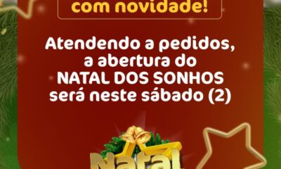 Atendendo a pedidos da população de Sinop e também da região, a Prefeitura definiu alterar a data de abertura do Natal dos Sonhos, que agora será...