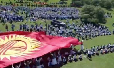 Mash/Telegram Caminhão de sorvete desce uma ladeira e deixa crianças feridas durante um festival no Quirguistão, país da Ásia Central. Na imagem, a bandeira do país...