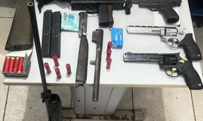 Militares da equipe da Patrulha Rural do Quartel do Comando-Geral da PM prenderam dois homens faccionados, de 32 e 20 anos, com submetralhadora, revólveres e pistola,...