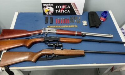Policiais militares da 26º Companhia Independente de Força Tática apreenderam, na noite desta quinta-feira (26.10), três armas de fogo, 55 munições de diversos calibres e oito...
