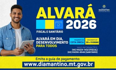 A Prefeitura de Diamantino, por meio do Decreto Municipal nº 075/2025, disponibilizou nesta segunda-feira (03/02), a prorrogação do prazo para a emissão do Alvará de Funcionamento...