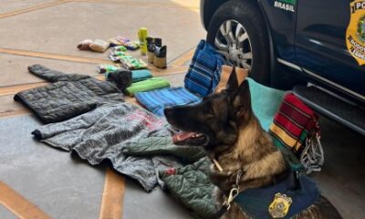Na tarde de sábado (07), a Polícia Rodoviária Federal (PRF) apreendeu, com auxílio de cão farejador, cocaína diluída entre os tecidos de roupas e escondida em...