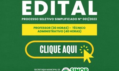 Estão abertas as inscrições para o Processo Seletivo Simplificado, Nº 001/2023, da Secretaria Municipal de Educação, Esporte e Cultura, destinado à contratação de 160 Professores, com...