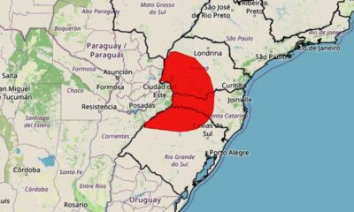 O Instituto Nacional de Meteorologia (Inmet) emitiu alerta vermelho para áreas do norte do Rio Grande do Sul, centro-oeste de Santa Catarina e sudoeste do Paraná,...