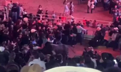 Reprodução / Redes Sociais Touro no memento em que invadiu a arena onde estava o público que aguardava para assistir Ana Castela Um touro invadiu a...