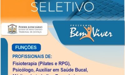 O Tribunal de Justiça de Mato Grosso (TJMT) disponibiliza nesta quinta-feira (24 de agosto) as inscrições para o processo seletivo de profissionais de Fisioterapia (Pilates e...