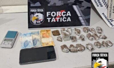 Policiais da Força Tática do 2° Batalhão Regional prenderam dois homens, de 18 e 22 anos, por tráfico ilícito de drogas, na noite desta segunda (18.11),...