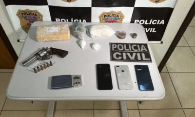 Três pessoas, entre elas um adolescente, envolvidos com tráfico de drogas e porte ilegal de arma de fogo foram autuadas em flagrante pela Polícia Civil, nesta...