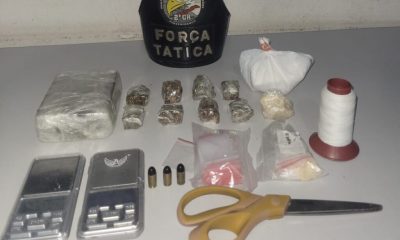 Policiais militares da Força Tática apreenderam, na noite desta quinta-feira (09.03), meio tablete de maconha, oito porções da mesma substância, sete porções de cocaína e três...