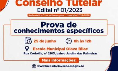 As provas para a escolha dos novos membros do Conselho Tutelar de Cuiabá serão realizadas no dia 18 de junho. Os interessados na função de Conselheiro...