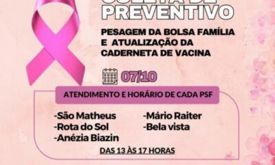 Beneficiários do Programa Bolsa Família tem um compromisso com a saúde no sábado, 07 de outubro. Na data, cinco unidades de saúde – São Matheus, Rota...