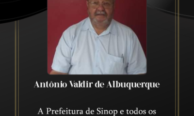 A Prefeitura Municipal de Sinop e o prefeito Roberto Dorner lamentam, com pesar, o falecimento de Antônio Valdir de Albuquerque, de 72 anos, na manhã de...