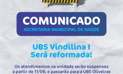 A Secretaria de Saúde informa que a Unidade Básica de Saúde Maria Vindilina retomará seus atendimentos amanhã, sexta-feira (15), após passar por uma reforma completa. A...