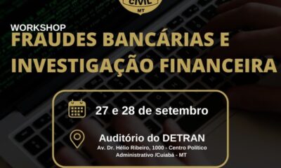 A Polícia Civil de Mato Grosso, por meio da Academia de Polícia (Acadepol), promove o Workshop “Fraudes Bancárias e Investigação Financeira”, nos dias 27 e 28...