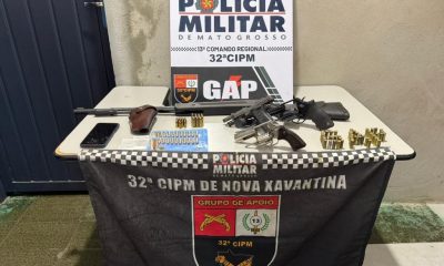 Policiais militares do 13º Batalhão prenderam um homem, por porte ilegal de arma de fogo, na tarde desta quarta-feira (18.2), em Nova Xavantina (557km de Cuiabá)....