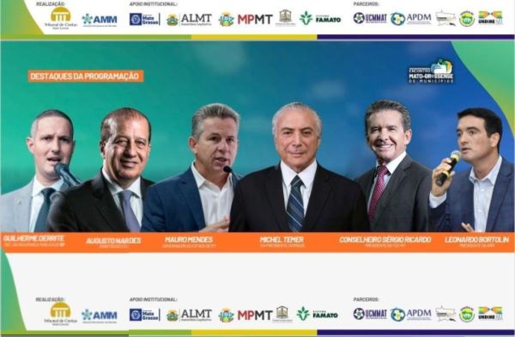 Presenças confirmadas – Além do ex-presidente Michel Temer, já estão confirmadas as presenças do governador Mauro Mendes, do presidente da Confederação Nacional dos Municípios (CNM), Paulo Ziulkoski, do secretário de Segurança Pública do Estado de São Paulo, Guilherme Derrite, do ministro do Tribunal de Contas da União, Augusto Nardes, de senadores, deputados federais, estaduais, entre outras autoridades.