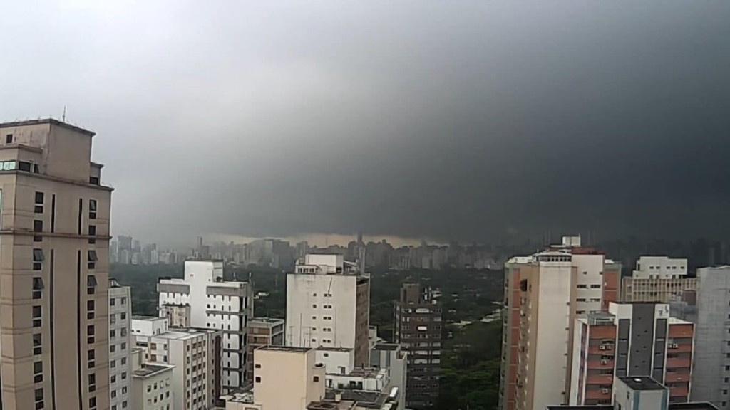 As fortes chuvas ocorrem em razão do contraste entre o ar quente e a influência de uma nova frente fria.