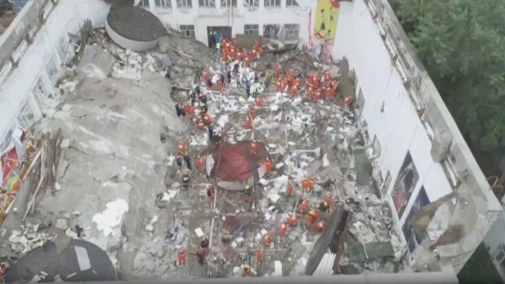 Autoridades chinesas acreditam que o empilhamento de materiais ilegais no telhado pode ter causado o desmoronamento. Ao todo, 19 pessoas estavam no local no momento do acidente, e quatro delas conseguiram escapar. A operação de busca e resgate envolveu cerca de 160 bombeiros e 39 caminhões.