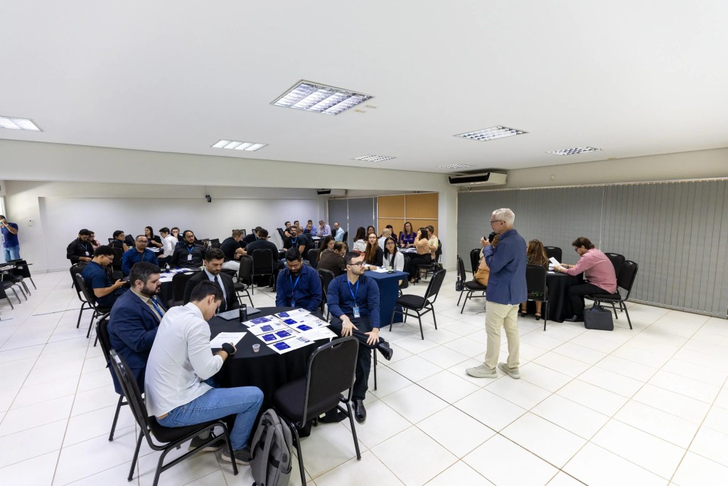 Conduzida pelo facilitador Eduardo Carvalho de Souza Brito, a oficina seguiu o modelo de “garagem de inovação”, rompendo com o formato tradicional das capacitações essencialmente teóricas.